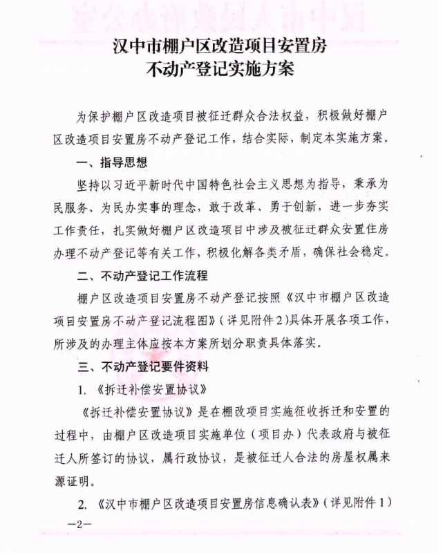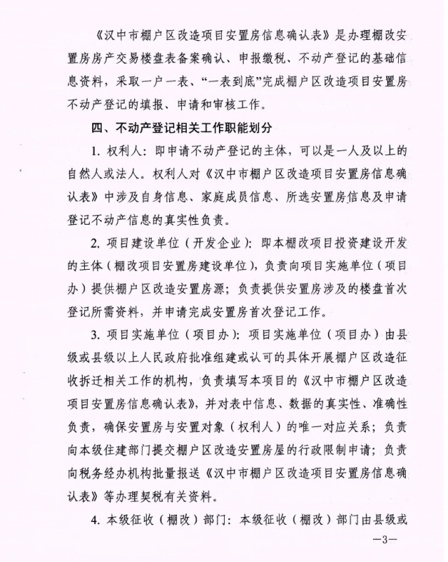 汉中市棚户区改造项目安置房不动产登记实施方案